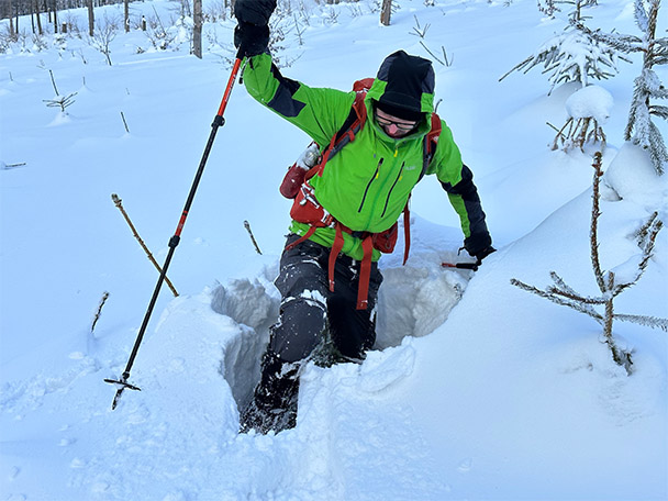 Na zimowym szlaku oraz podczas używania rakiet, niezbędne okazują się również kijki trekkingowe, które nie tylko pozwolą na zachowanie równowagi, ale także pomogą wydostać się z tzw. Studni drzewnych. Są to szczególne miejsca, gdzie znajduje się cienka warstwa niestabilnego śniegu, w który możemy się zapaść, przechodząc np. koło takiej niepozornej choinki. Kilkukrotnie mieliśmy okazję wpaść w taką studnię, gdy zeszliśmy ze szlaku.