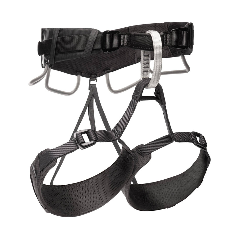 - uprząż z szerokim pasem biodrowym i wyściełanymi nogawkami;