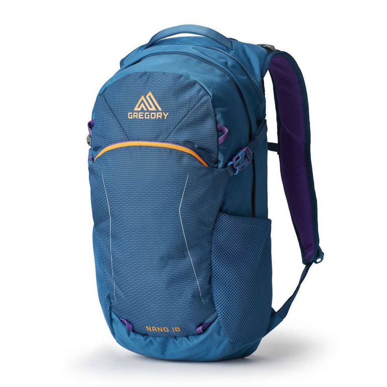 Plecak Gregory NANO 18 został zaprojektowany z myślą o sytuacjach, w których potrzebujesz mieć wszystkie najistotniejsze rzeczy blisko pleców. Dzięki swojej prostej i niezawodnej konstrukcji posiada on możliwość łatwego dostosowania się do różnych rodzajów sylwetek oraz długości pleców. Wyprofilowanie plecaka nie tylko pozwala na bardzo dobrą oddychalność podczas górskiej wędrówki, ale również na bezproblemowe "zwinięcie" go, bez uszczerbku na jego budowie. Dzięki takiemu zaprojektowaniu znakomicie sprawdzi się jako zapasowy plecak podczas dłuższej wędrówki, a także w samolocie. Plecak posiada regulowane taśmy piersiową oraz biodrową, które dodatkowo stabilizują go podczas użytkowania, wobec tego sprawdzi się również jako plecak rowerowy.
