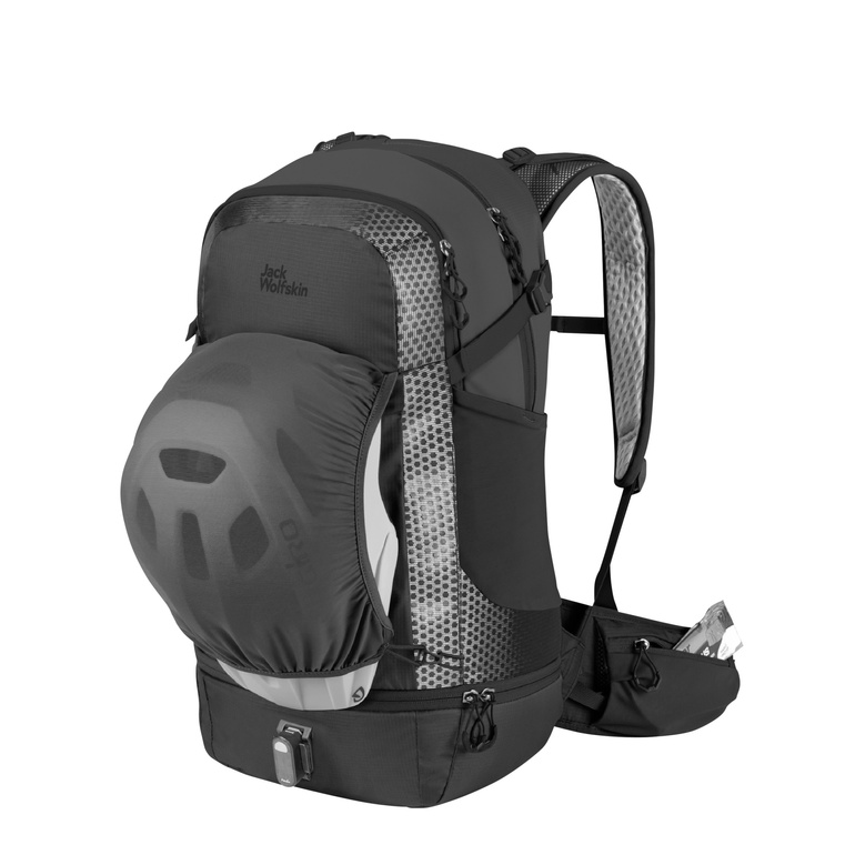Plecak Jack Wolfskin MOAB JAM PRO to wersja najbardziej popularnego plecaka marki. Opcja ta wyróżnia się znaczną ilością powierzchni odblaskowej, która realnie wpływa na widoczność użytkownika w warunkach słabego oświetlenia. Plecak posiada wiele udogodnień dedykowanych rowerzystom. Wśród nich znajdują się siatka do mocowania kasku na plecaku, gwizdek sygnalizacyjny czy kieszonki dedykowane do przewożenia narzędzi rowerowych.