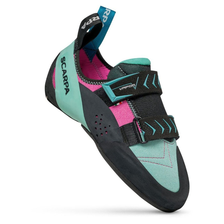 Wszechstronne i mocno uniwersalne buty wspinaczkowe dla średniozaawansowanych wspinaczy - Scarpa VAPOR V. Łączą w sobie optymalny komfort i precyzję. Zapinanie na rzepy pozwala na szybkie zakładanie i zdejmowanie oraz dobre dopasowanie do stóp. Dodatkowa taśma gumowa na języku pomaga utrzymać go w stałej pozycji podczas wspinania.
