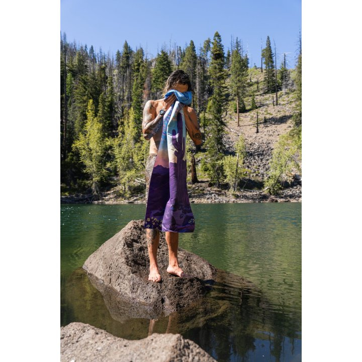Ręcznik PERSONAL BODY to bardzo lekki i wszechstronny ręcznik do całego ciała, który mimo słusznych rozmiarów po rozłożeniu (137 x 64 cm) jest bardzo lekki, pakowny i bardzo chłonny (chłonie wodę o czterokrotności swojej własnej wagi) a schnie o 70% szybciej niż standardowe ręczniki bawełaniane. A do tego pa piękną, outdoorową grafikę, która przywodzi na myśl piękne wspomnienia i/lub marzenia :-)