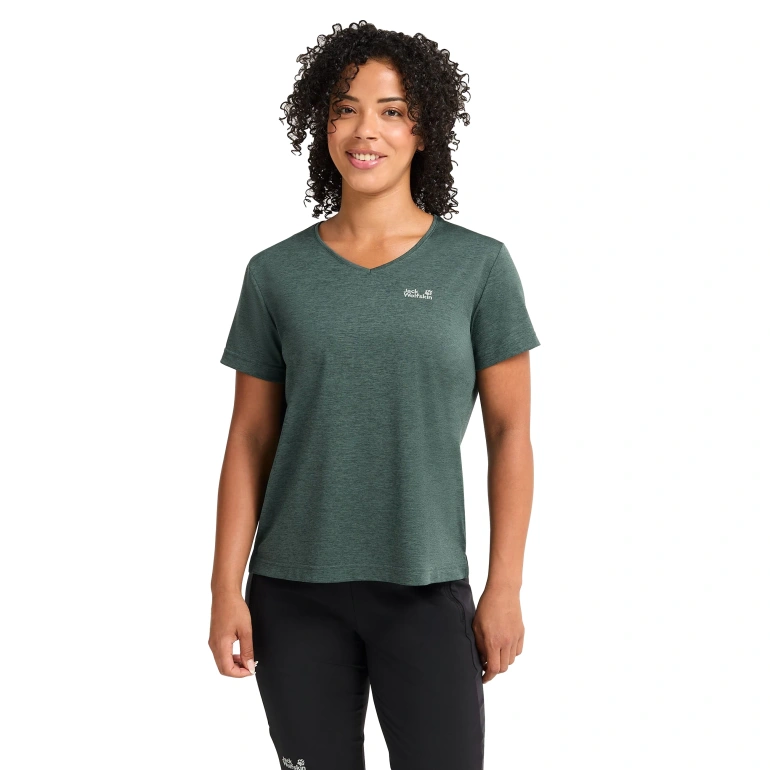 Koszulka Jack Wolfskin WILDTRAIL T WOMEN zapewnia wysoki komfort podczas aktywności. Bardzo sprawnie odprowadza wilgoć, ma swobodny krój i nie krępuje ruchów. Sprawdzi się podczas wędrówek, rekreacyjnej jazdy na rowerze czy jogi, szczególnie na świeżym powietrzu.