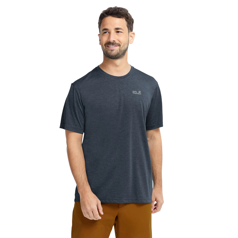 Koszulka Jack Wolfskin WILDTRAIL T MEN zapewnia wysoki komfort podczas aktywności. Bardzo sprawnie odprowadza wilgoć, ma swobodny krój i nie krępuje ruchów. Sprawdzi się podczas wędrówek, rekreacyjnej jazdy na rowerze czy jogi, szczególnie na świeżym powietrzu.